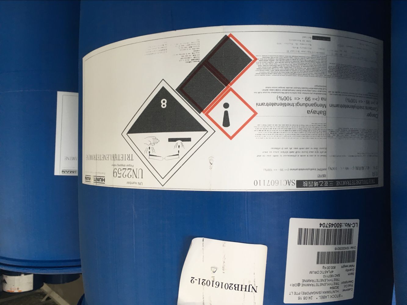 產(chǎn)品名 | 三乙烯四胺 | 英文名 | Triethylenetetramine(TETA) | 產(chǎn)品外觀 | 微黃液體 | 包裝規(guī)格 | 200kg/桶(塑料桶) | 產(chǎn)地 | 美國、沙特 | 供應(yīng)商 | 亨斯邁 | 應(yīng)用 | 造紙、潤滑油、固化劑、聚酰胺樹脂等 | 危險(xiǎn)類別 | 8類危化品 | CAS NO | 112-24-3 |