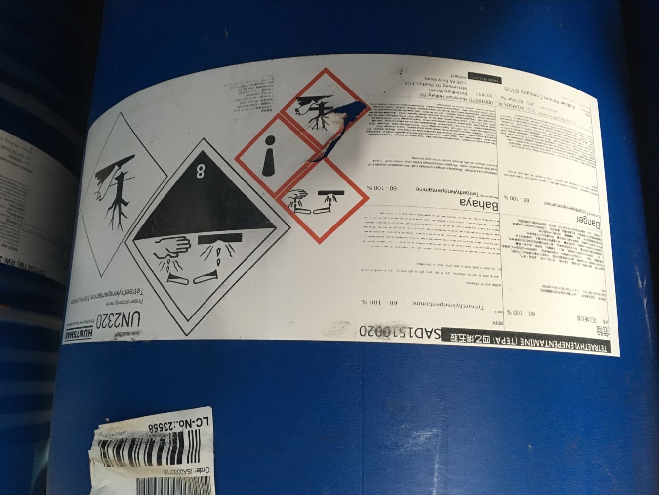 產品名 | 四乙烯五胺 | 英文名 | Tetraethylenepentamine(TEPA) | 產品外觀 | 微黃液體 | 包裝規(guī)格 | 205kg/桶(塑料桶) | 產地 | 美國、沙特 | 供應商 | 亨斯邁 | 應用 | 固化劑、聚酰胺樹脂等 | 危險類別 | 8類; | CAS NO | 112-57-2 |